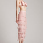 Tiered Crystal Fringe High Waisted Skirt in Blush Pink