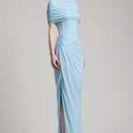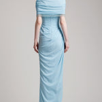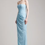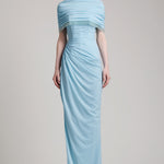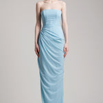 - Pleated bustier wrapped effect floor length dress