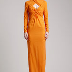 Ribbon Crossed Halterneck Long Sleeve Dress in Orange