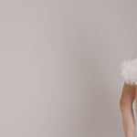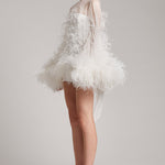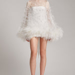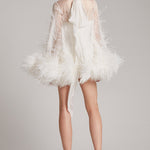 Ostrich Feather Embellished Mini Dress with Bell Sleeves in White
