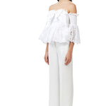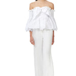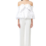 Broderie Cotton Bow Embellished Off Shoulder Top