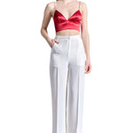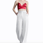 The Crepe Silk High Waisted Long Pants in White is the single most effortless way to look put-together. With a high-rise cut, these pants accentuate your natural waist and fall to a flowing straight silhouette. Combine the latter with its luxurious silk crepe material comes a comfortable lightweight piece that will keep you cool at all times. Wear yours with anything from bralettes to chunky knits or blazers.