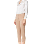 Easily a must-have, the Beaded Cropped Trousers in Nude have a creaseless appearance and snug slim fit, making it undeniably sleek and comfortable to wear. Embroidered on its pockets and side seams are subtle and dainty glass beads for that added flair. The trousers sit high on the natural waistline for a flattering silhouette and tapered above the ankles for your favourite pair of heels to shine through. Go for a simple look with a white silk satin shirt or amp it up with our Ostrich Feather Embellished Strapless Peplum Top in White.