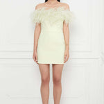 Ostrich Feather Trimmed Off Shoulder Top in Pale Chartreuse