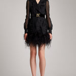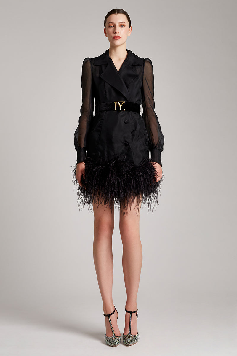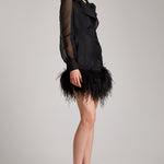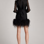Ostrich Feathers Embellished Silk Gazar Mini Trench Dress in Black
