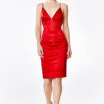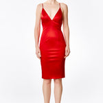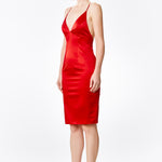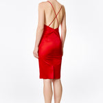 Red Silk Satin Plunging Neckline Cross Back Dress