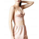 With a luxurious clean silhouette, the Silk Satin Bikini Bralet in Nude Pink is easy to combine. Crafted from lustrous silk satin, the piece has a beautiful sheen to go with its spaghetti strap neckline to result in an alluring cut, wherein its bareness emphasises on the contours of your décolletage and natural beauty. Clasps are included in the back to ensure a precise fit and excellent security. Wear yours with anything from feminine skirts to tailored pieces.