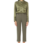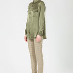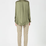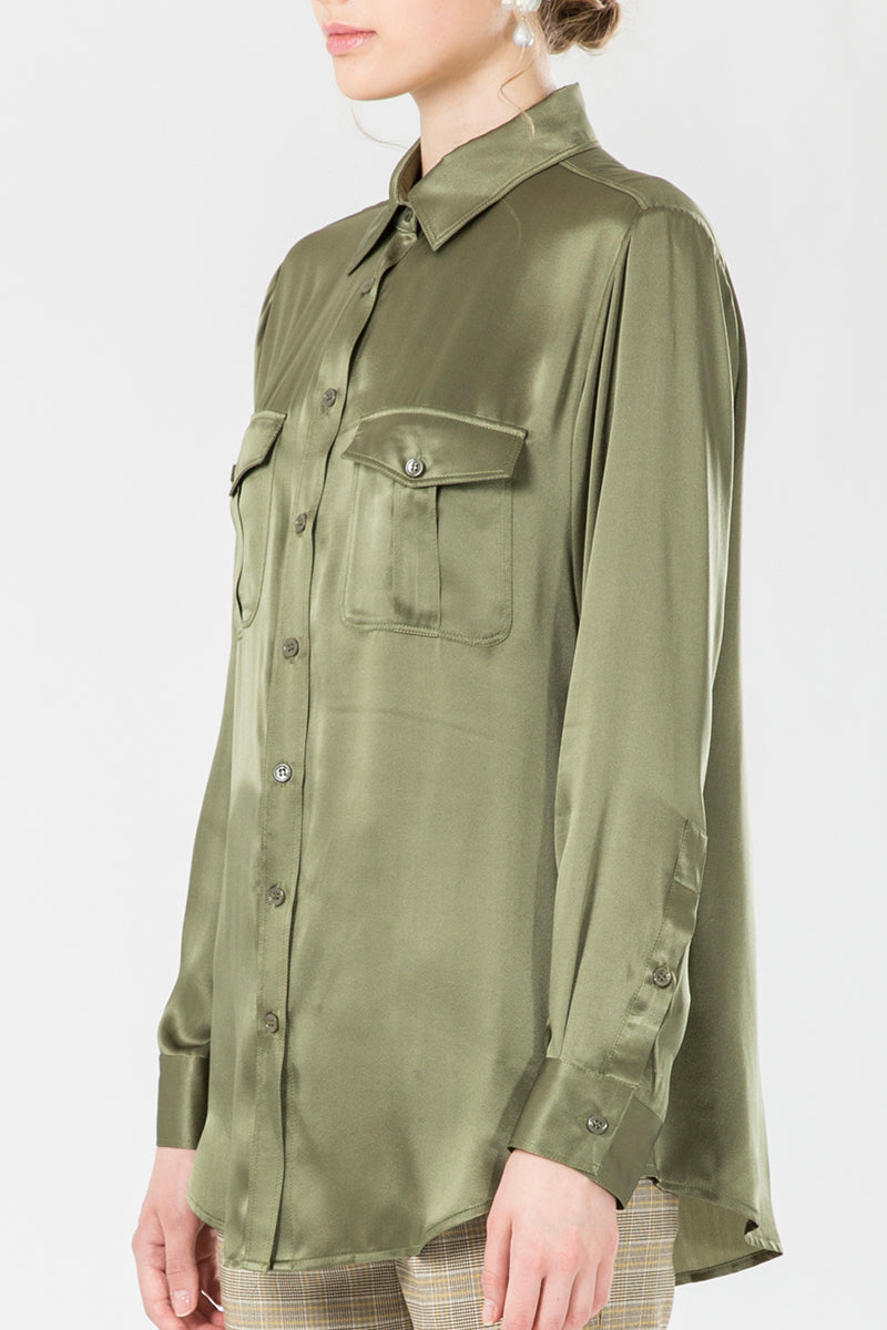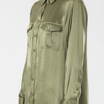 Silk Satin Oversized Double Pocket Shirt in Olive Green
