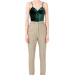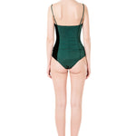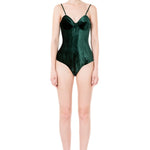 Silk Velvet Corseted Bodysuit in Emerald Green