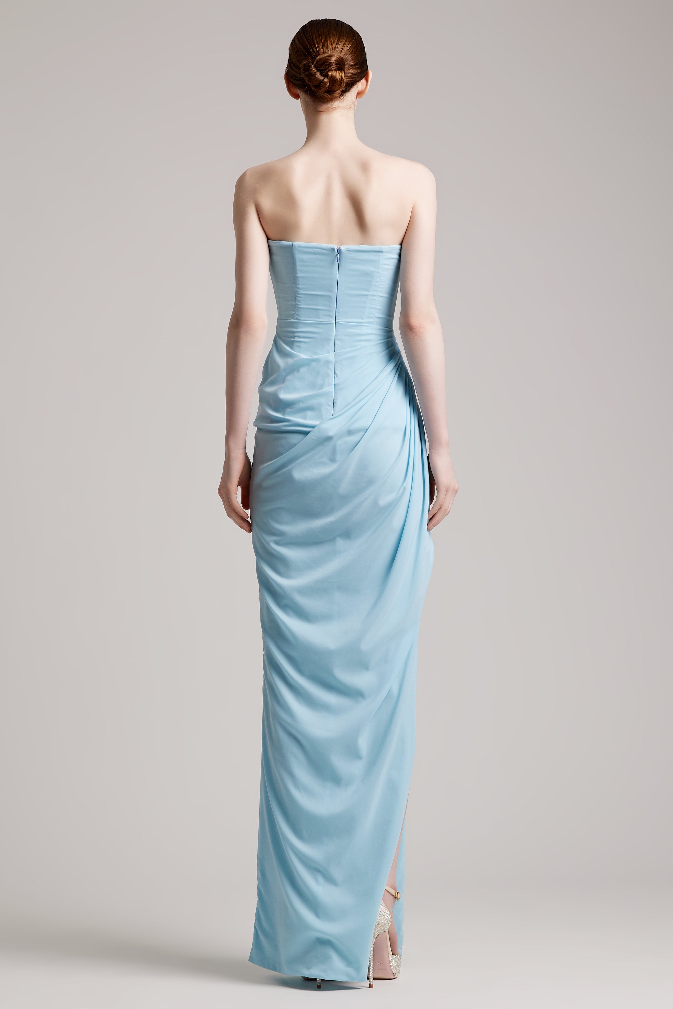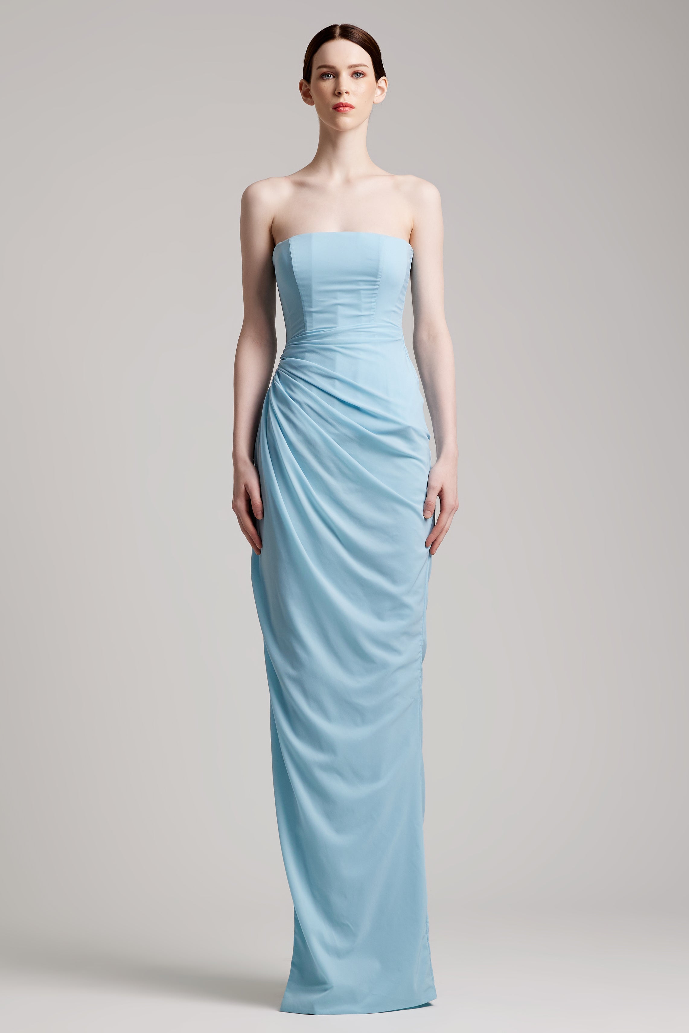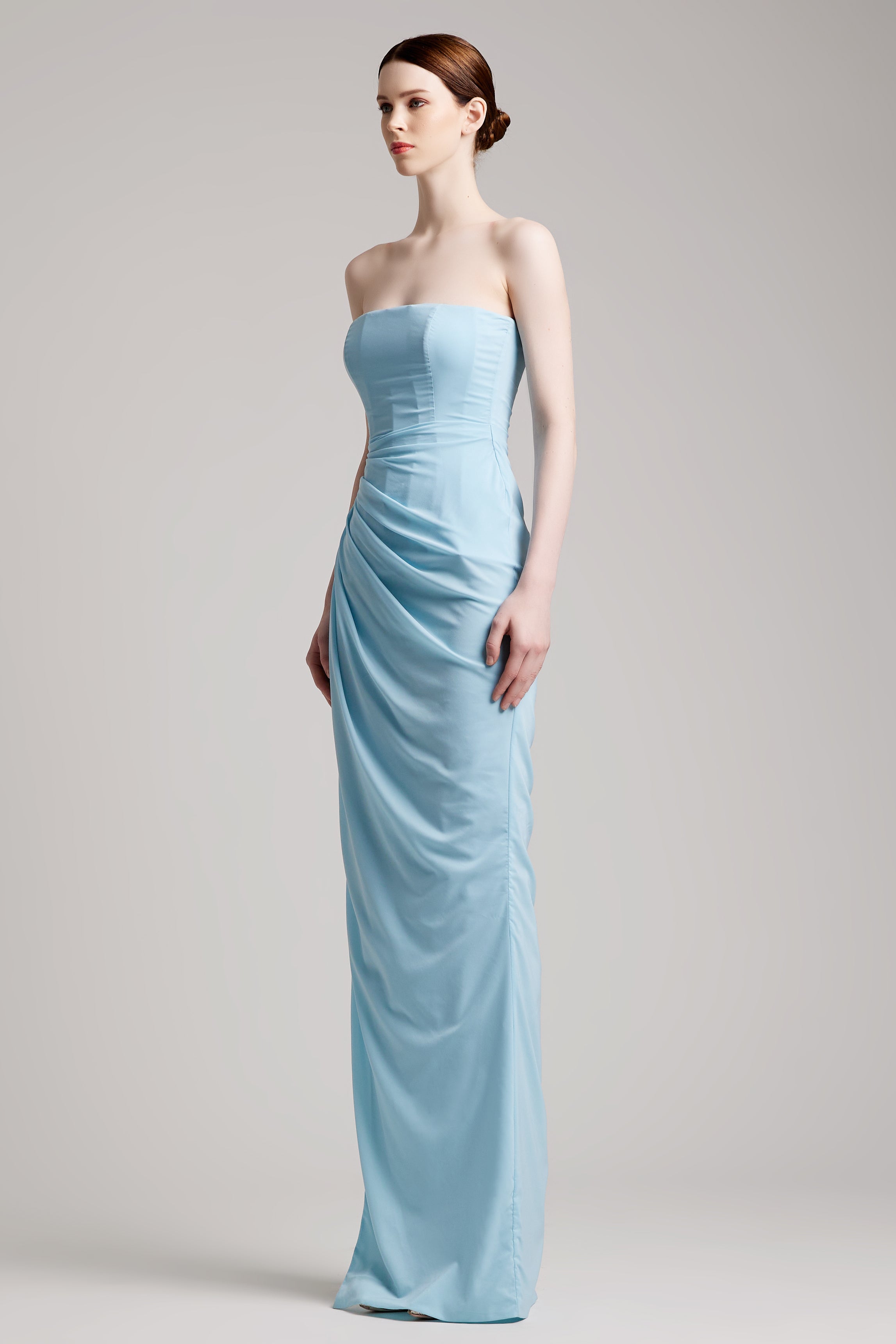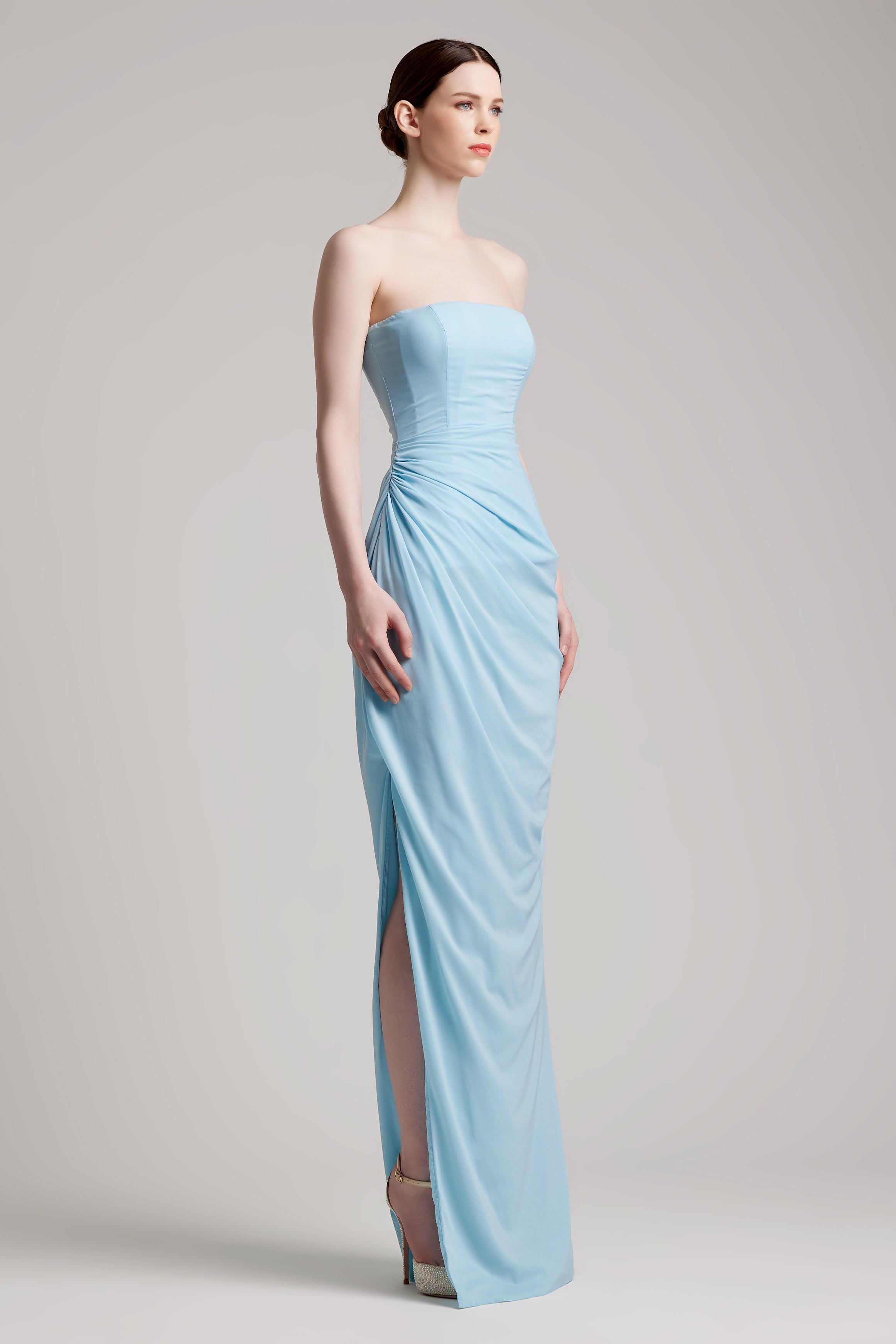 - Pleated bustier wrapped effect floor length dress