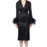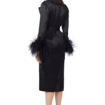 Ostrich Feathers Embellished Sleeves Silk Gazar Trench Coat in Black