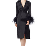 Embodying elegance with a tinge of drama, the Ostrich Feathers Embellished Sleeves Silk Gazar Trench Coat in Black is truly a delicacy to get dolled up in. The piece is lightweight and features a luxurious smooth finish thanks to its silk gazar base fabric, which coexists seamlessly with the exquisite ostrich feather embellished cuffs that spruce up the entire design most optimally. With both the ostrich feather cuffs and silk belt being detachable, style this versatile piece as you please such as wearing it as is with a simple slip dress underneath or leaving out the additional parts to layer it over your go-to day or night time ensemble.