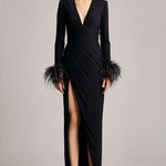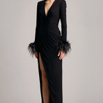 Structured Shoulder Side Ruched Long Sleeves Dress in Black