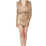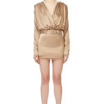 Simple yet stylish, the Silk Satin High Waisted Micro Mini Skirt With Crystal Fringes in Champagne is the perfect mini to own. Cut from luxurious silk satin, the skirt’s lustrous appearance is the candid main appeal, which makes it minimalist and versatile to pair with. The crystal fringes at the hem are harmonising and dainty and make way for the skirt’s shorter length to highlight great legs. This piece comes with a same-toned detachable silk satin belt for seamless pairing.