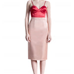 A true classic with a luxurious twist, the Silk Satin Pencil Skirt in Pink features a pencil silhouette with a lustrous finish that renders every movement graceful thanks to its silk satin base fabric. The piece features a hem that grazes right below the knee for an infinitely classy look and slit in the back for easy movement. Sitting high on the waistline where several darts are, the skirt hugs your curves to beautifully highlight a desirable feminine figure.