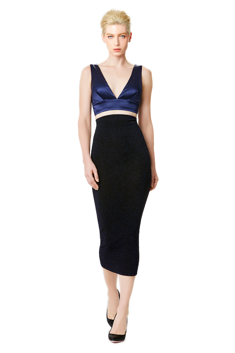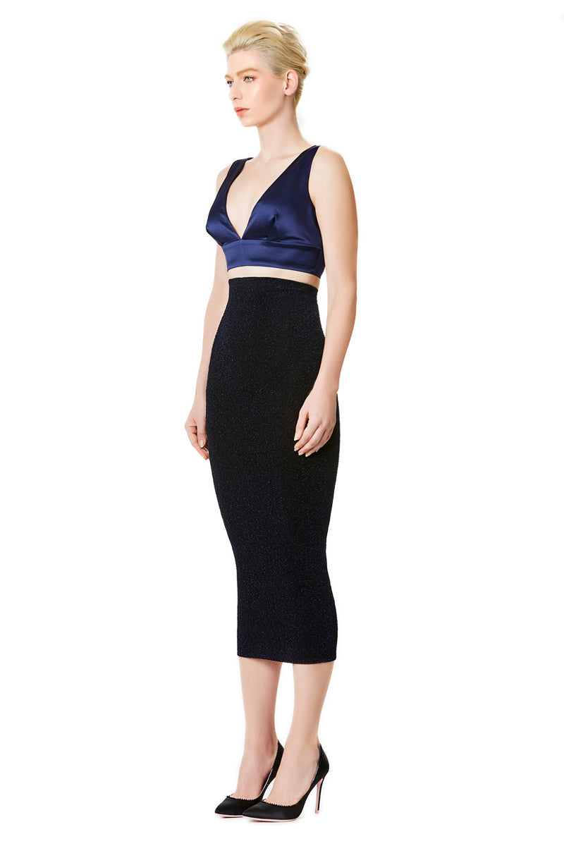 Silk Satin Plunging Neckline Bralet in Blue
