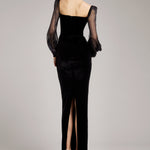 Silk Velvet Top with Puffed Silk Chiffon Sleeves in Black