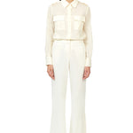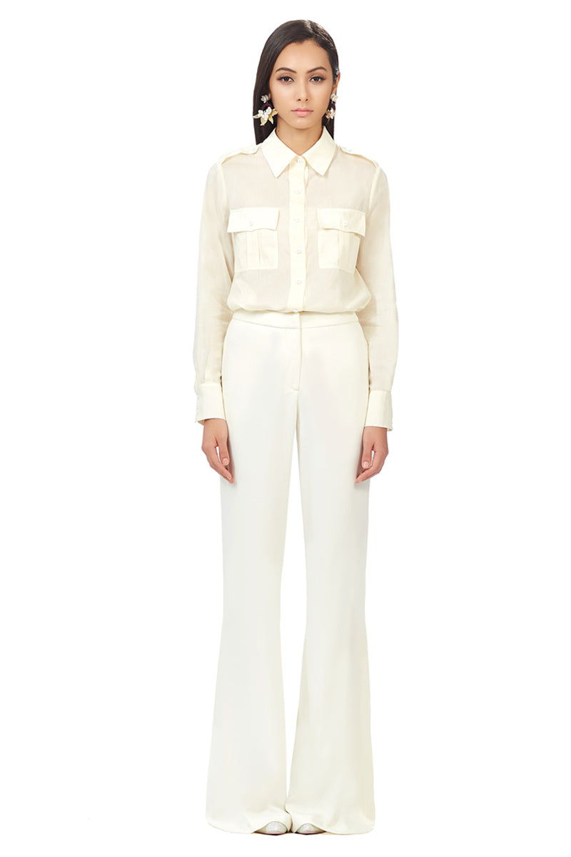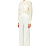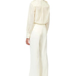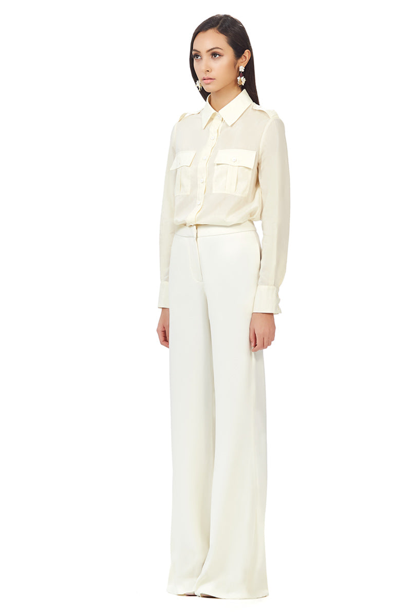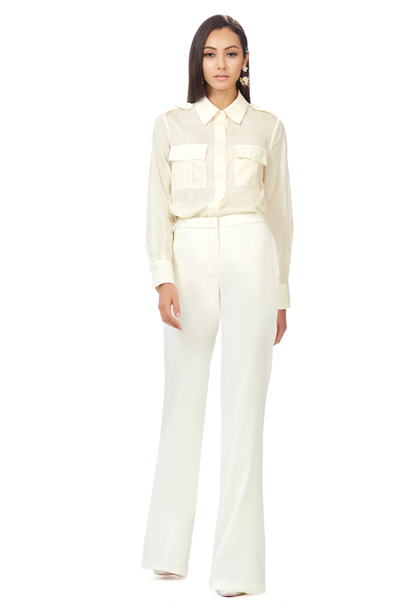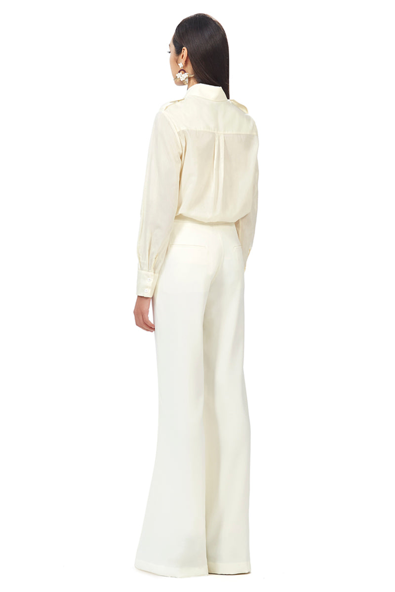 In a pleasing pure white hue, the Wide Leg Trousers in Ivory White combines a nonchalant silhouette with a supremely polished finish to bring you a piece that is ever so covetable. These wide leg pants feature a flattering design that hug your waist and hips yet follow with a loose floor-length cut that flare from the knee for a slight bell-bottom cut and airy feel. Wear it best with a top that is cropped or tucked in for a leg-lengthening view.