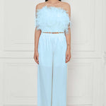 Ostrich Feather Embellished Strapless Top in Baby Blue