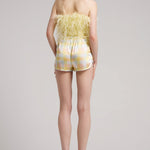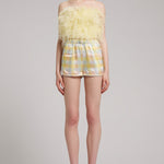 Ostrich Feather Embellished Strapless Top in Light Yellow
