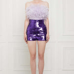 There is no better way to describe the Ostrich Feather Embellished Strapless Top in Lilac than coining it flamboyantly fabulous. The top features a gorgeous lilac hue and individually embroidered on plush ostrich feathers to bring you a carefree and lavish quality. Sitting just above the waist, its full appearance accentuates the bust while giving rise to an illusion of a slimmer waist.