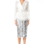 Ostrich Feathers Embellished Silk Gazar Coat in White