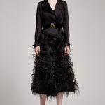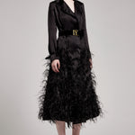 Silk Gazar Ostrich Feathers Embellished Trench Coat in Black