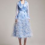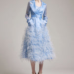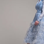 Silk Gazar Ostrich Feathers Embellished Trench Coat in Blue