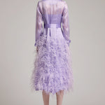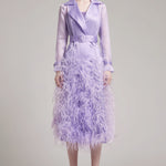 Silk Gazar Ostrich Feathers Embellished Trench Coat in Lilac