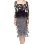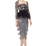 Hand Embellished Mesh Top With Ostrich Feathers Peplum in Black