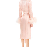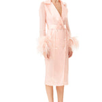 Ostrich Feathers Embellished Sleeves Silk Gazar Trench Coat in Pink