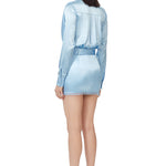 Simple yet stylish, the Silk Satin High Waisted Micro Mini Skirt With Crystal Fringes in Whispy Blue is the perfect mini to own. Cut from luxurious silk satin, the skirt’s lustrous appearance is the candid main appeal, which makes it minimalist and versatile to pair with. The crystal fringes at the hem are harmonising and dainty and make way for the skirt’s shorter length to highlight great legs. This piece comes with a same-toned detachable silk satin belt for seamless pairing.