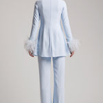 In a pastel blue hue, the Wide Leg High Waisted Trousers in Baby Blue combines a nonchalant silhouette with a supremely polished finish to bring you a piece that is ever so covetable. These wide leg pants feature a flattering design that hug your waist and hips yet follow with a loose floor-length cut that flare from the knee for a slight bell-bottom cut and airy feel. Wear it best with a top that is color coordinated for a figure lengthening effect.