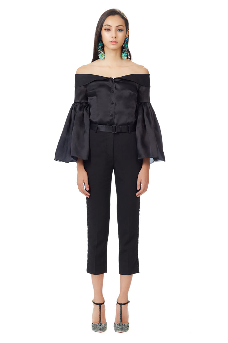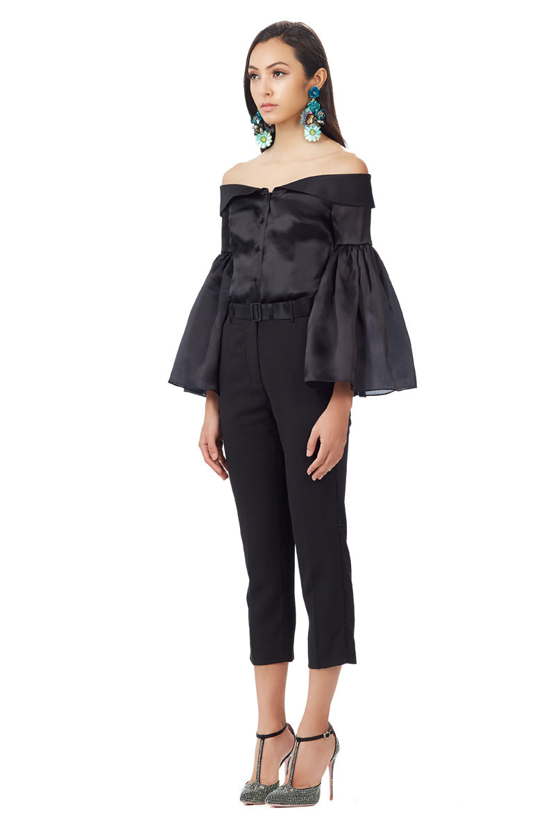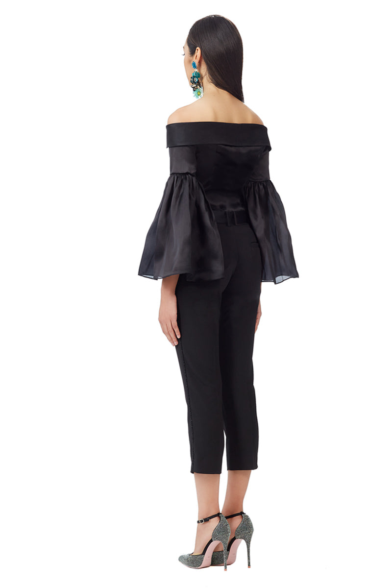 Silk Gazar Off Shoulder Bell Sleeves Top in Black
