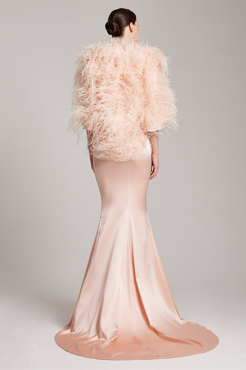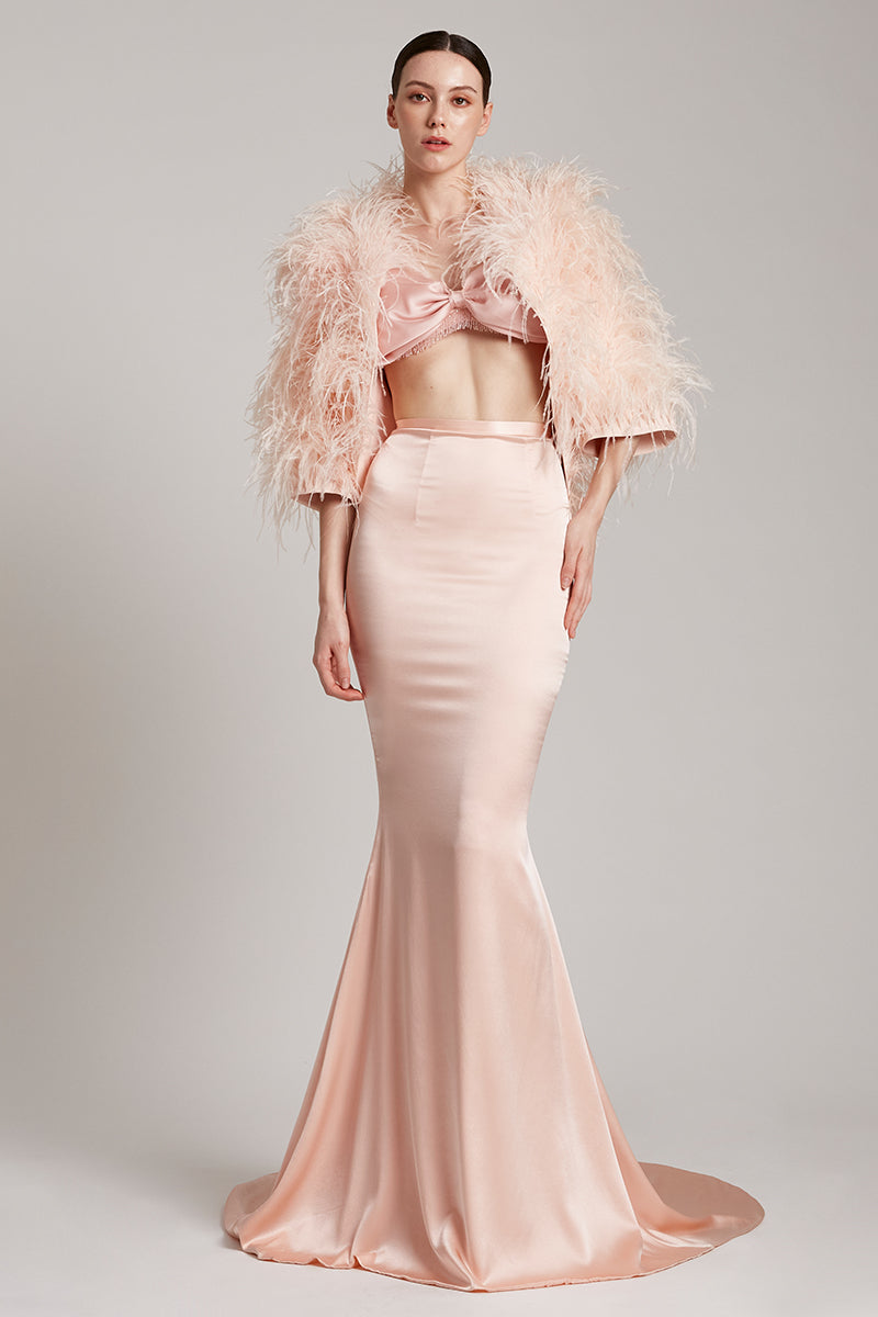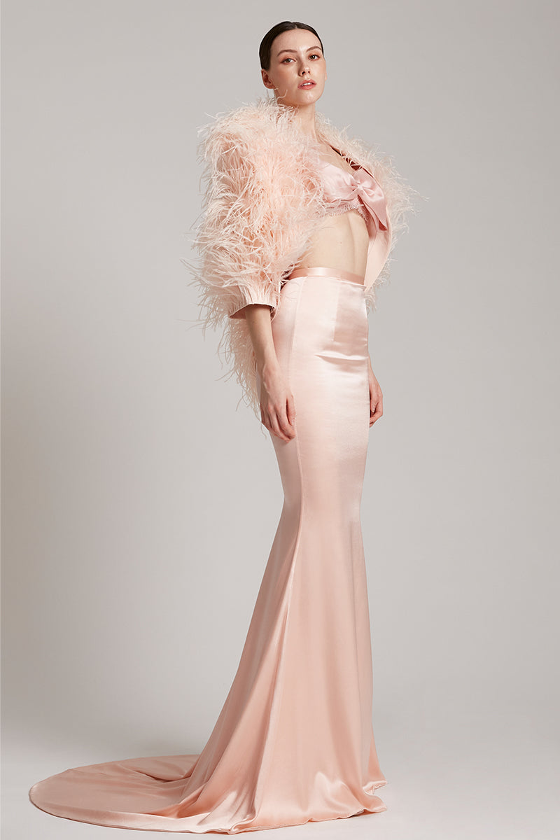 Silk Satin Trumpet Skirt with Train in Blush Pink