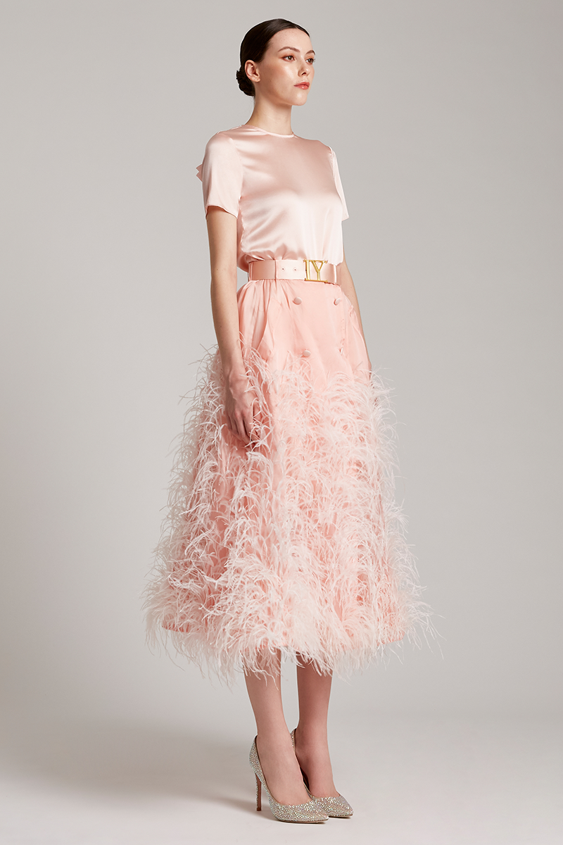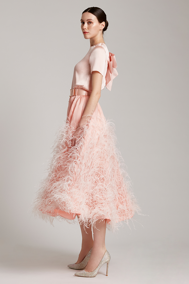 With its timeless silhouette and delightful embellishments, the Blush Pink Silk Satin Short Sleeve Blouse with a graceful Big Bow is a captivating interpretation of a classic design. While maintaining a minimalist front, this blouse astounds with its back adorned with a row of functional buttons cascading from collar to hem. Attached to these buttons is an enchanting silk gazar bow that can be delicately attached or gently removed, allowing you to indulge in your every desire. Combine this exquisite blouse with a pair of Blush Pink Silk Satin Trousers for a bewitching yet effortless allure or pair it with a Blush Pink Feather-embellished skirt for an enchanting and dreamy rendezvous.