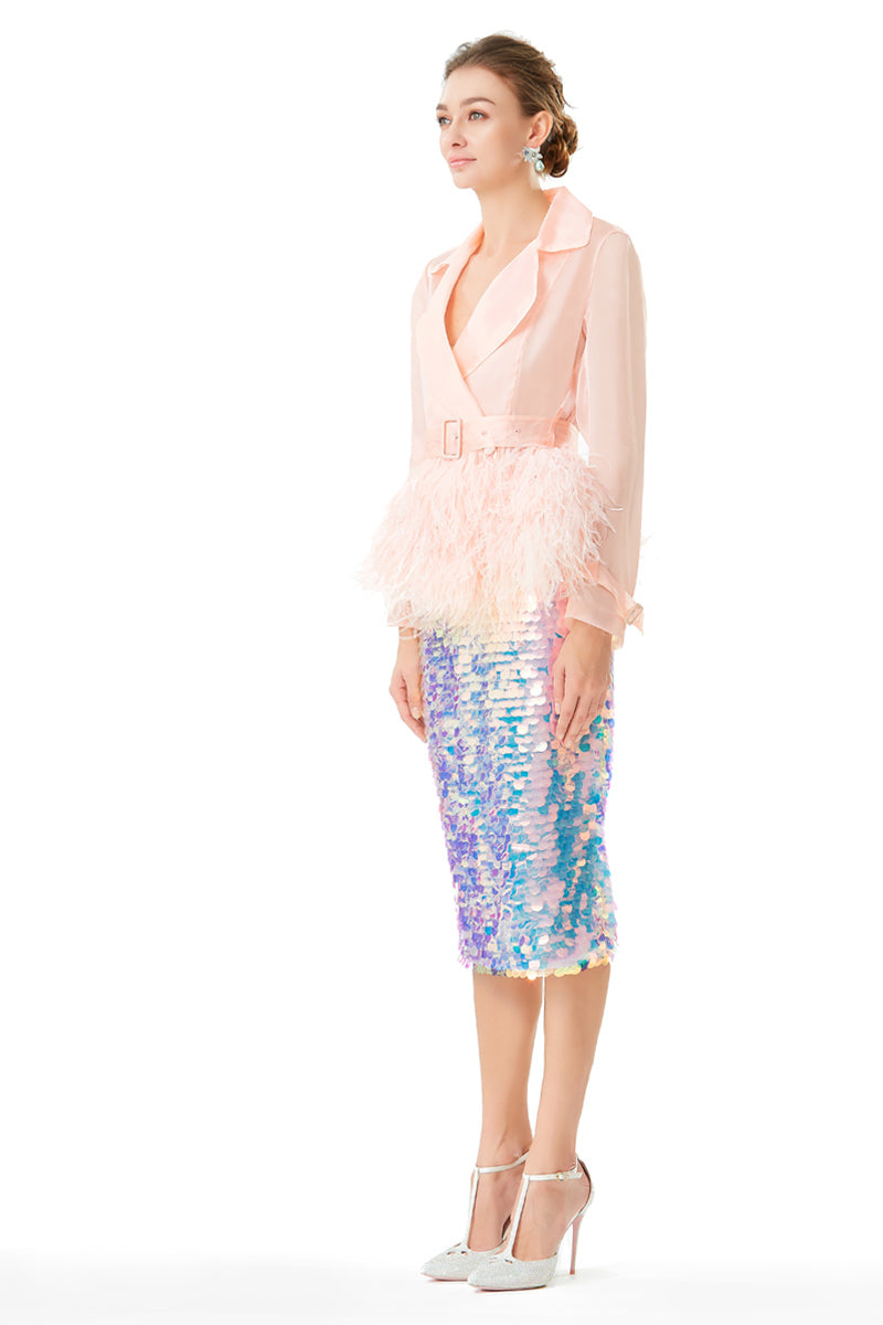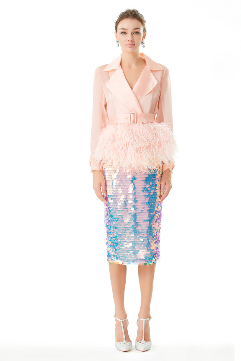 Ostrich Feathers Embellished Silk Gazar Coat in Pink