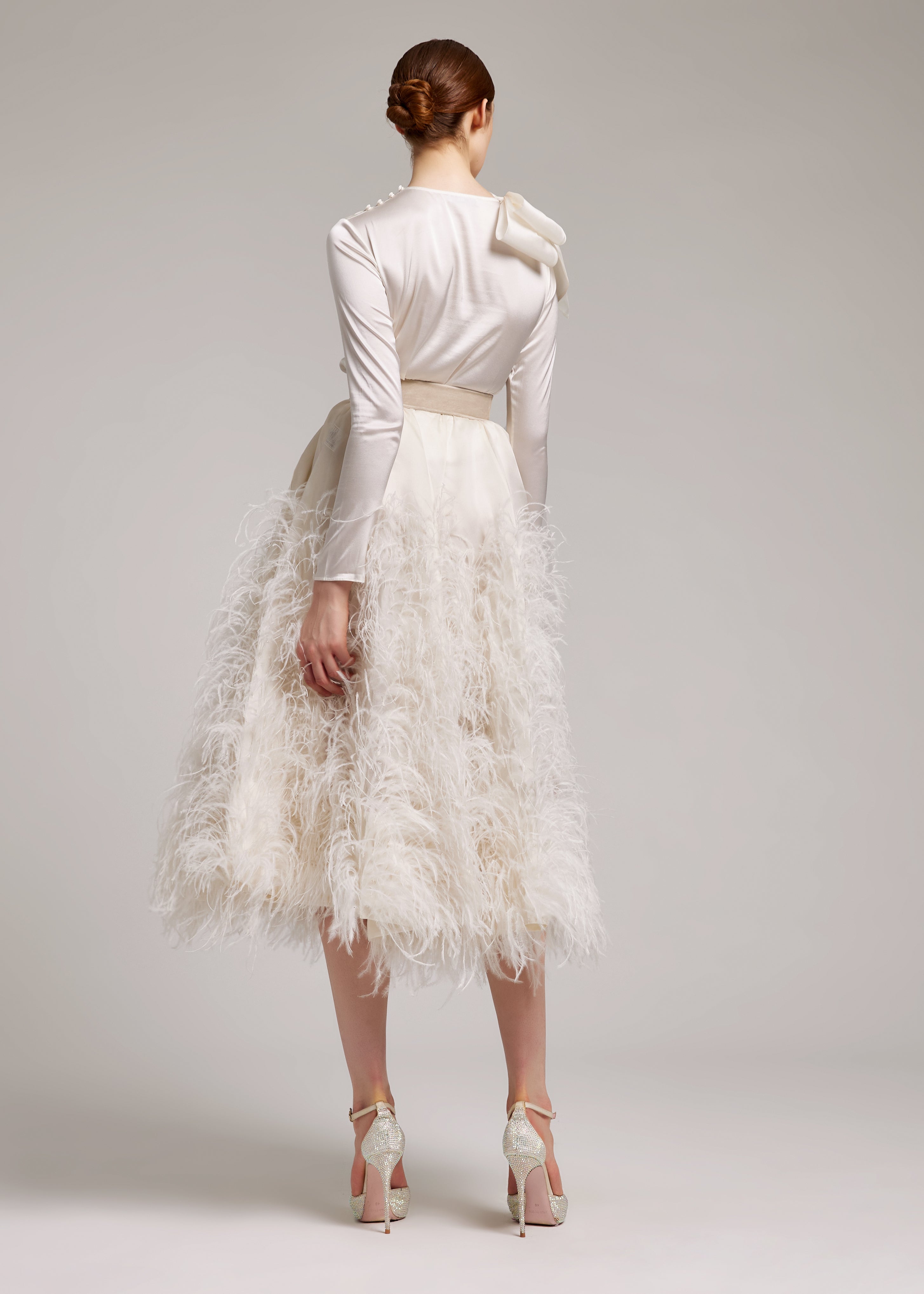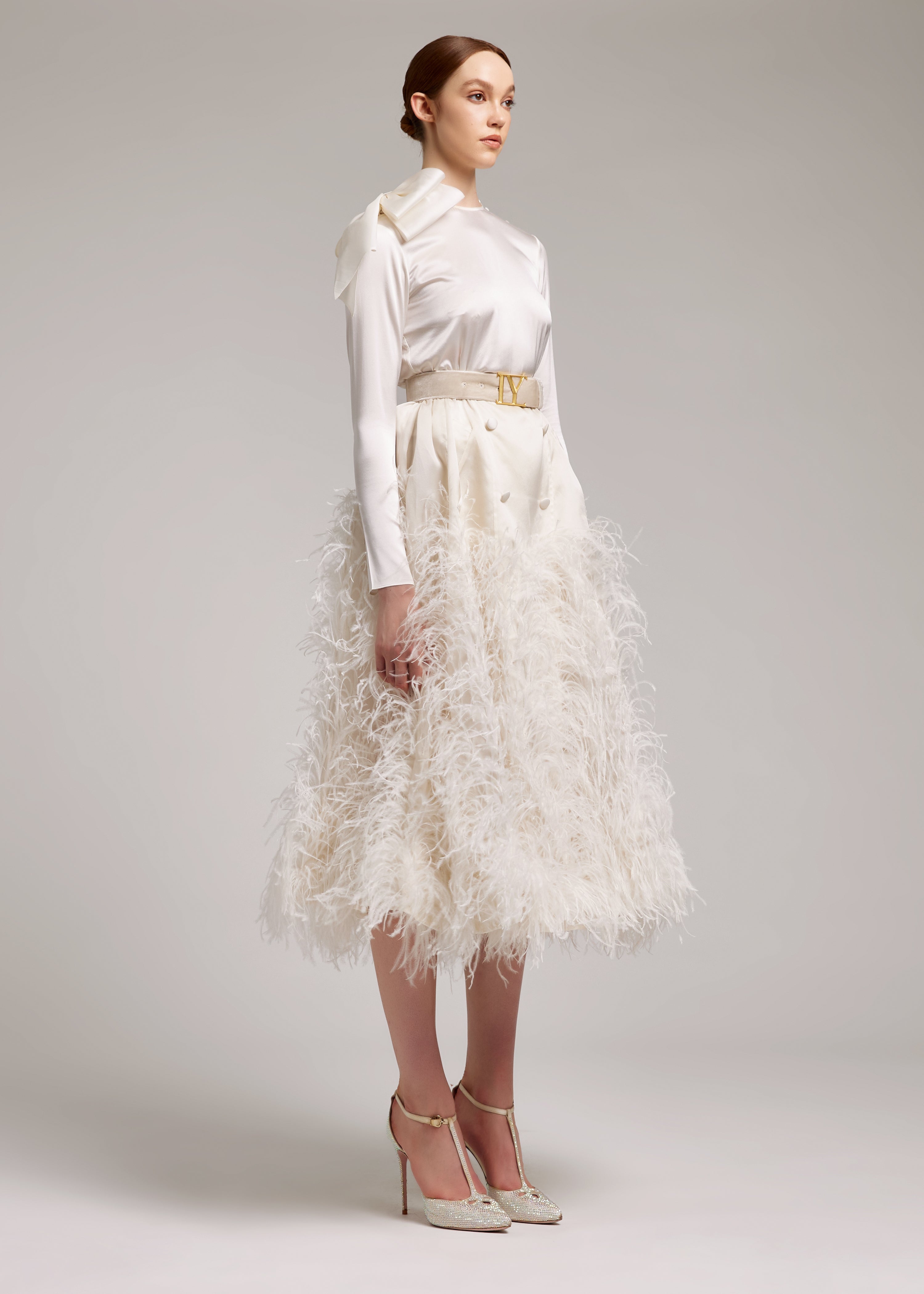 Silk Satin Button and Bow Embellished Blouse with Long Sleeves In White