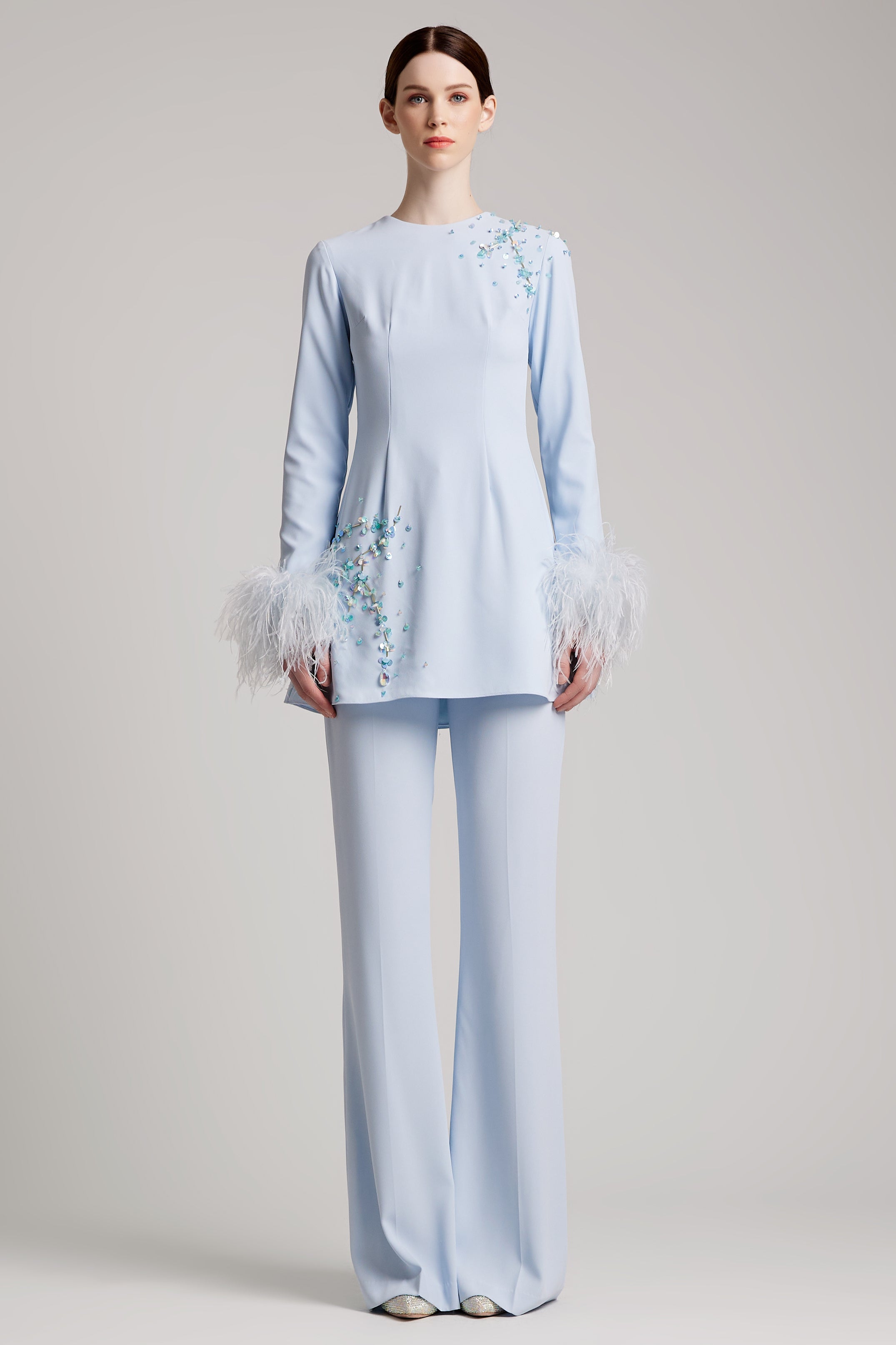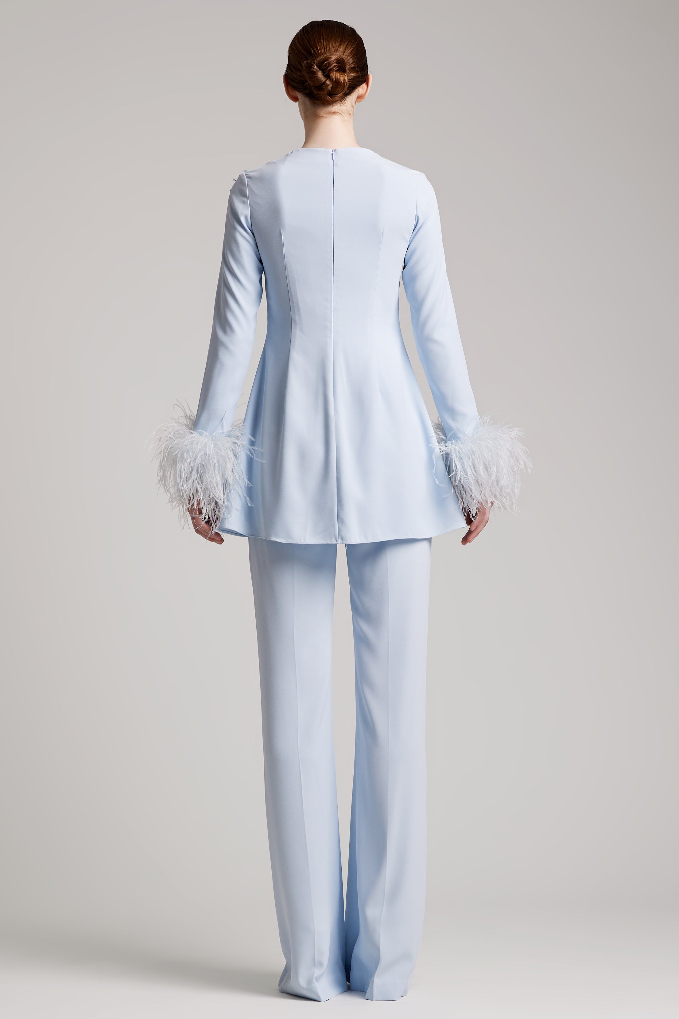 In a pastel blue hue, the Wide Leg High Waisted Trousers in Baby Blue combines a nonchalant silhouette with a supremely polished finish to bring you a piece that is ever so covetable. These wide leg pants feature a flattering design that hug your waist and hips yet follow with a loose floor-length cut that flare from the knee for a slight bell-bottom cut and airy feel. Wear it best with a top that is color coordinated for a figure lengthening effect.