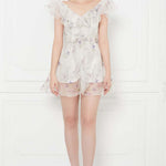Simply darling, Printed Ruffled Silk Gazar Mini Dress has a feminine silhouette consisting of ruffles all along the neckline that flow continuously down the bodice and around the hem of the mini length skirt. While the billowy ruffles call attention to the piece, remaining details are rightfully complementing such as the flattering front opening and detachable tie belt which nips in the waist and ties at the back in a charming bow.
