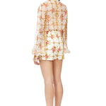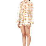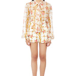 Courtly yet slack, the Printed Silk Chiffon Pussy Bow Blouse is the ultimate go-to for anything from casual Fridays to fanciful dinners. Cut from lush silk chiffon, this piece is slightly see-through and has an airy feel especially distinctive in its blouson sleeves. The cuffs are trimmed with delicate frills and the neckline is gathered to a high pussy-bow, which both elevate the blouse with an appealing feminine touch. Tuck yours into any minimalist high-rise bottoms or its matching high-waisted shorts.
