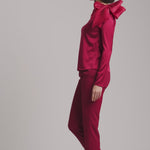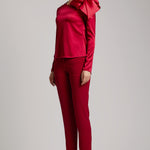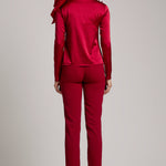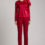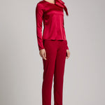 Silk Satin Button and Bow Embellished Blouse with Long Sleeves in Maroon